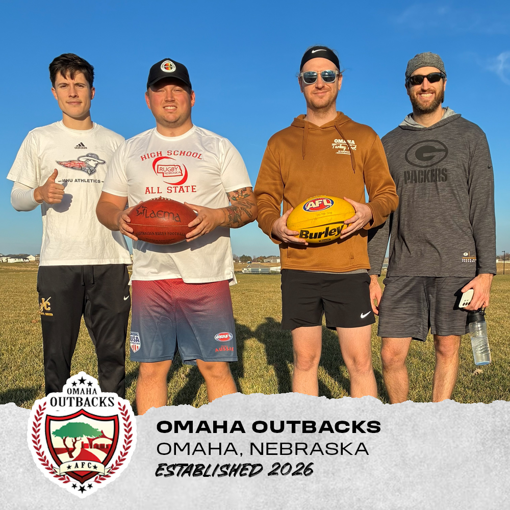 The Omaha Outbacks are one of the newest additions to the USAFL landscape, launching into competition across the Midwest and beyond in 2026. Built on grit, athleticism, and a passion for Aussie Rules, the Outbacks bring a fresh identity to Nebraska’s sports scene.